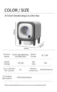 Say goodbye to the mess with our Smart Litter Box! Featuring automatic waste collection, smart app control, and active air sterilization, it keeps your home fresh and clean. The antibacterial silver-ion materials and multiple cat detection ensure hygiene and safety. With one-touch litter replacement, it offers the ultimate hands-free solution for cat owners.